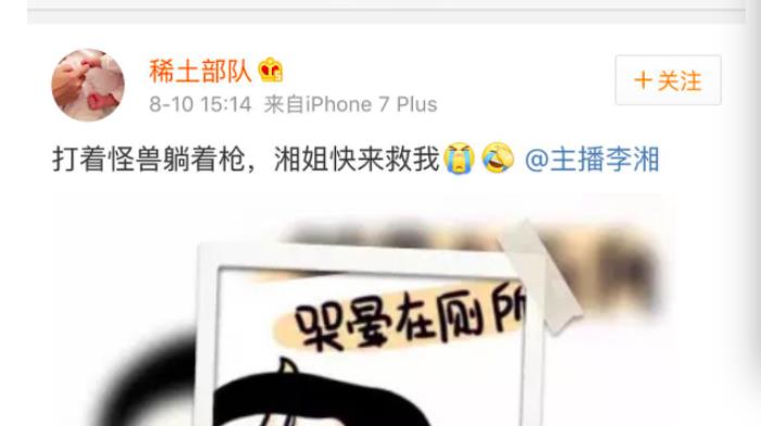 真是躺着也中枪!之后章子怡发微博称:“打着怪兽躺着枪,湘姐快来救我。”接着在微博上@ 李湘,很是可爱。