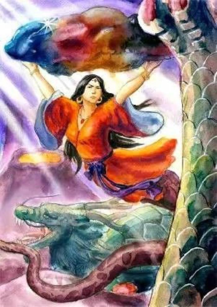女娲氏:一位美丽的女神,身材象蛇一样苗条。女娲补天的故事和盘古开天的故事一样,都是中国人家喻户晓的。女娲时代,随着人类的繁衍增多,社会开始动荡了。