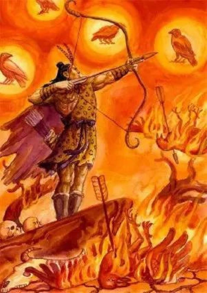 后羿,又称“夷羿”,相传是夏王朝东方族有穷氏的首领,善于射箭。当时夏王“启”的儿子“太康”耽于游乐田猎,不理政事,被后羿所逐。太康死后,后羿立太康之弟仲康为夏王,实权操纵于后羿之手。但后羿只顾四出打猎,后来被亲信“寒浞”所杀。神话传说“后羿”是“嫦娥”的丈夫。后羿在的时候,天上有十个太阳,烧得草木,庄稼枯焦,后羿为了救百姓,一连射下九个太阳,从此地上气候适宜,万物得以生长。他又射杀死了猛兽毒蛇,为民除害。民间因而奉他为“箭神”。