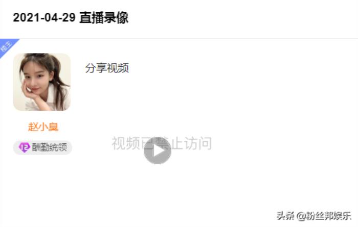 并且,赵小臭当天的直播回放也被平台禁止访问删除。