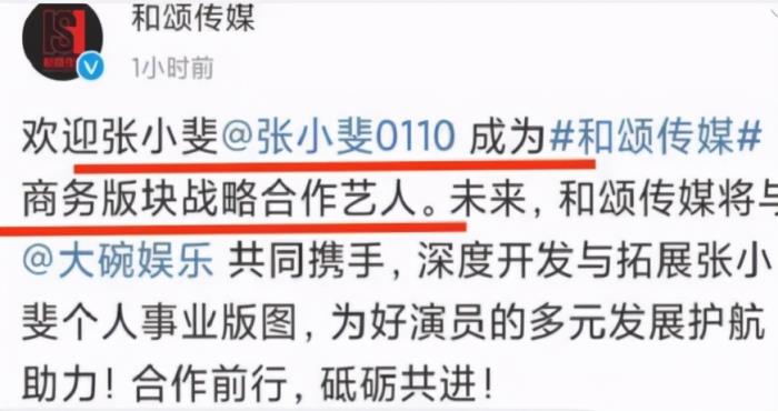 还有,可能有些宝宝不知道吧?张小斐现在已经和李冰冰姐妹的和颂签了部分合约了,未来和颂将会负责她营销、时尚等方面的事务,而贾玲公司和她的合约,现在其实也就剩下影视这块了。