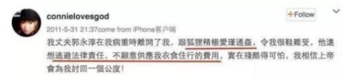 伍智恒在社交平台上炮轰郭永淳和新欢杨爱瑾,斥责郭永淳不仁不义,杨爱瑾插足她的家庭。