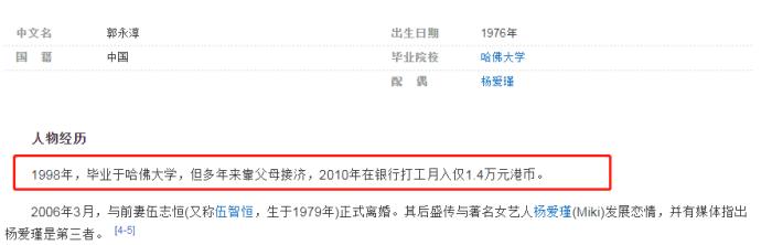 资料显示郭永淳自哈佛毕业后始终靠父母接济。