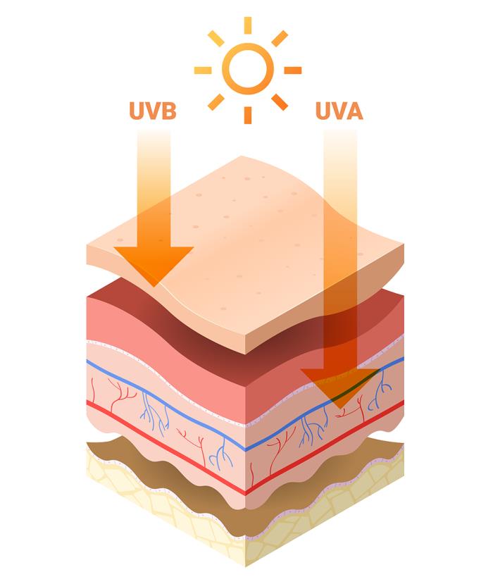 我们知道太阳发出的紫外线是皮肤致黑的主要元凶,而太阳光到达地球表面的紫外线包括有 UVA 和 UVB 两种,UVA 即 Ultraviolet Radiation A,波长在 320~400nm 之间,波长较长(长波紫外线),穿透能力也强,据说能穿透皮肤表层,破坏真皮组织,产生皱纹等、加速黑色素的形成,甚至容易诱发皮肤癌。