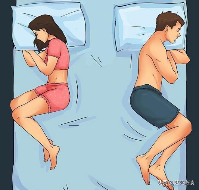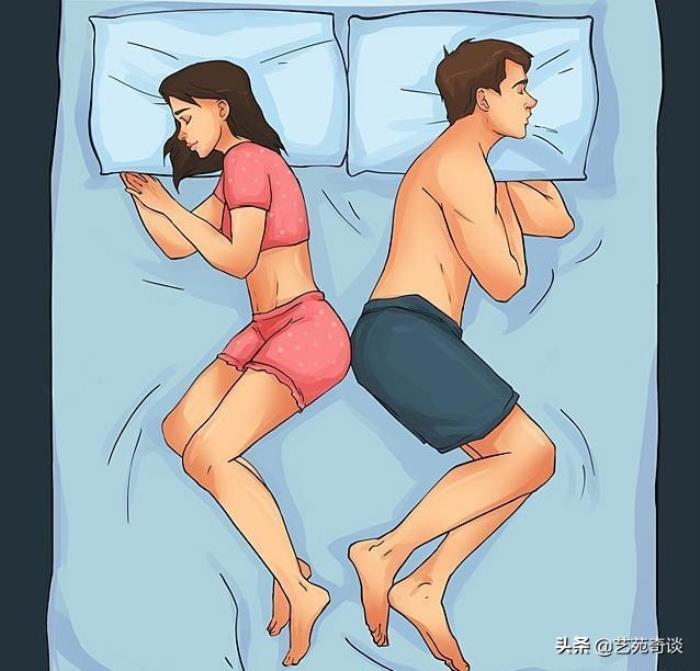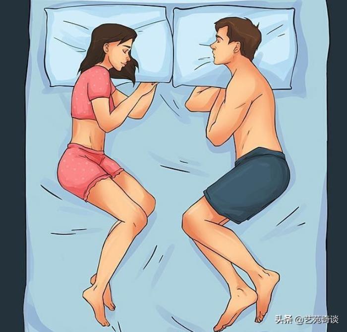 系绳子一样的睡姿:画面中的妻子自然蜷缩着身体,而丈夫只有手臂挨着妻子,一般情况下,总有一方喜欢不断地变换睡姿,但一方较少变化,这种睡姿说明夫妻之间彼此能互相关心,但同时也愿意互相包容和妥协,也让双方都能拥有良好的睡眠。