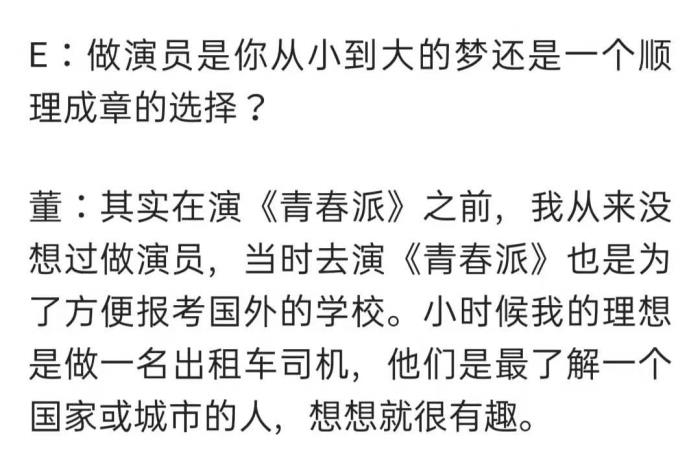 跟很多受家庭环境影响,自小就有演员梦的“星二代”不同。董子健小时候的理想,是长大了要做一名出租车司机。