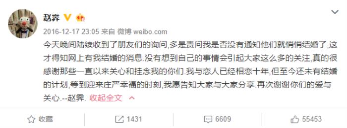 有很多爱情公寓的粉丝看到赵霁更新照片之后,都跑到赵霁的微博下面留言,其中点赞数最高的,是回忆最初的爱情公寓,如今已经物是人非,赵霁已经彻底和演艺圈断了往来。