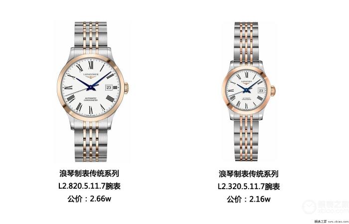 我们要说的第一对就是浪琴制表传统系列腕表,这两枚腕表的外观几乎完全一致,只是尺寸有所不同,男表的表径为38.5毫米,女表则是26毫米,价格也有所差异。表径都不算太大,一般人能够驾驭。白色表盘搭配间金表链贵气四溢,3点钟方向是日期显示窗口,通过背透可以看到机芯运转。无论从实用性还是设计感来看,这款腕表都有着不俗的实力。作为七夕礼物送出再合适不过了。