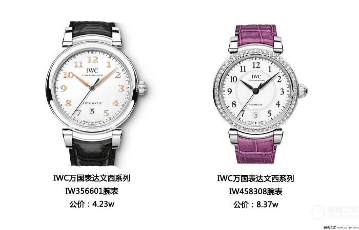这第一对是IWC万国表,万国表的达文西系列是深受大家好评的,我们要推荐的同样是这一系列的情侣腕表。这对腕表中的男表相对更加简约,银白色表盘搭配着优雅的柳叶形指针,充满绅士风度。而女表则设计得更加艳丽,莓粉色表带搭配银灰色表盘亮眼别致,表壳上镶嵌着54颗钻石,璀璨华丽。女演员张钧甯也曾佩戴过这枚女表。