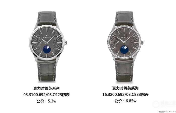 我们还要说的一对情侣腕表是真力时新推出的甄选ELITE菁英系列月相对表。女表除了在表壳上镶嵌有75颗钻石外,其它设计与男表大致相同,它们的月相盘设置在六点钟方向,月相盘的存在使得腕表增添了几分浪漫气息。值得一提的是,这对腕表为不同个性的佩戴者提供精钢或玫瑰金表壳,与丰富多彩的表带,适合不同风格情侣的多样选择。