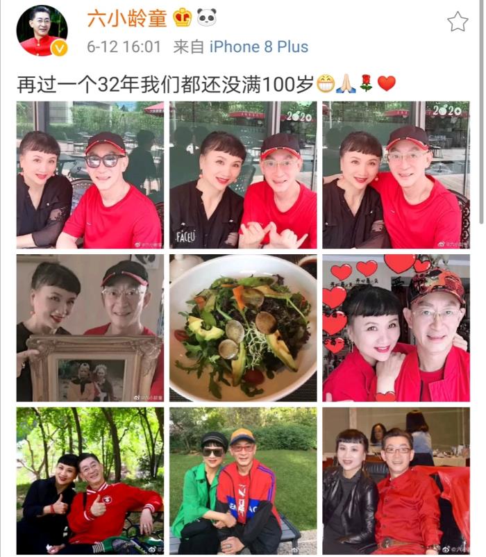 6月12日,六小龄童在社交平台上晒出了与妻子于虹的同框照片,他一次性晒出九张合照,庆祝与妻子结婚32周年。并且配文称:再过一个32年我们都还没满100岁,言语之间满是宠溺。