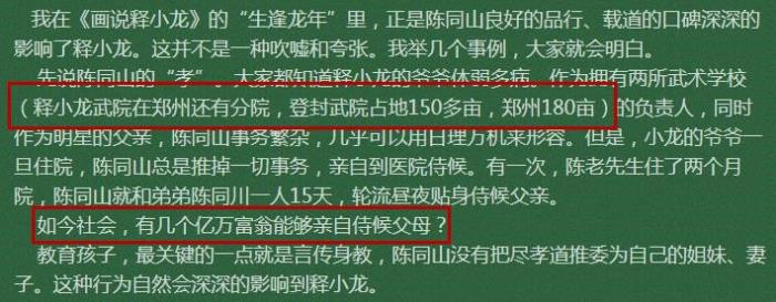 《画说释小龙》的作者曾在一篇文章中这样形容陈同山,称他是一个“亿万富翁”。