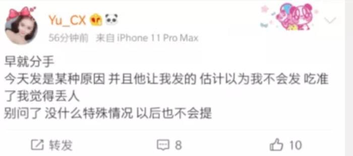 有意思的是,这次的家暴据她所说还是死亡宣告让她发的微博,而两人已经分手,这里注意,分手和分开是两个概念,至少蚕豆君是这么理解的。
