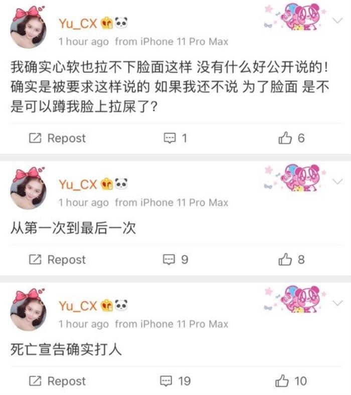那一天晚上,死亡宣告女友发了很多条动态,同时也实锤了死亡宣告确实打人,第一次到最后一次应该是指照片。但是有点迷惑,女友声称这些“爆料”,都是被要求这样说的,难道是死亡宣告自己要求?选择自爆?可是这些动态,还没有在网络保留24小时,就被彻底删掉,女友说得这么坚决,为何最后还会删掉?只是一场玩笑吗?还是说事后被“强迫”删掉,这个大家自己考量,就不在这里探讨个究竟。