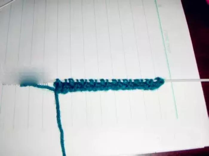 第五针和第三针织法相同,织上针。就这样以此类推,将一行织到头。↓