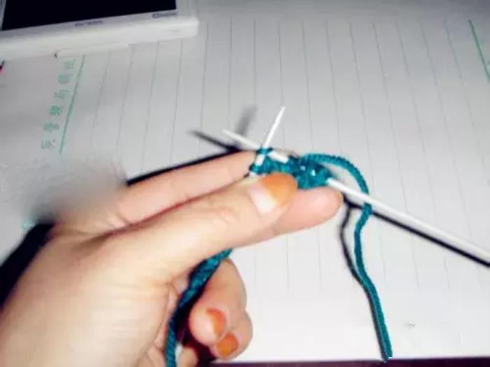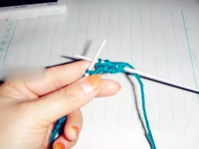 第五针和第三针织法相同,都是织下针。用右针穿入左针下面线里,将线往右针前边绕一下,然后将线织出来,左针上去掉一针;↓