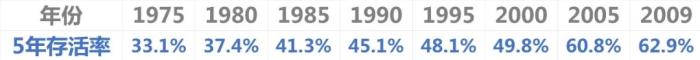 这是个非常庞大的人群,但最重要的数据是这个,儿童癌症的存活率,中国远远低于美国,并且是显著地低于美国。