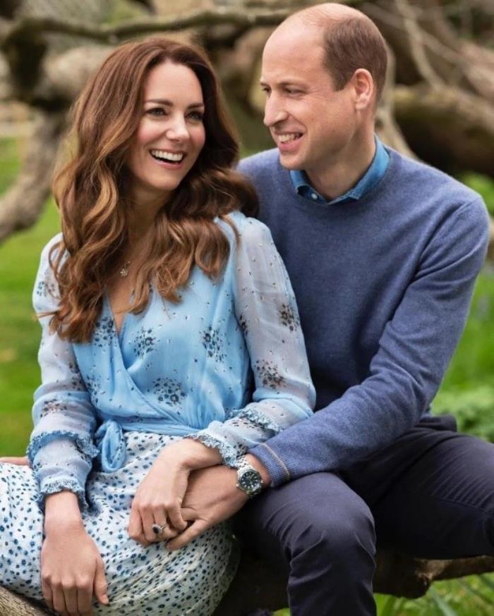这张照片中,凯特依偎在威廉怀中,左手握着威廉的无名指。威廉深情地看向凯特,眼中满是浓浓的爱意。