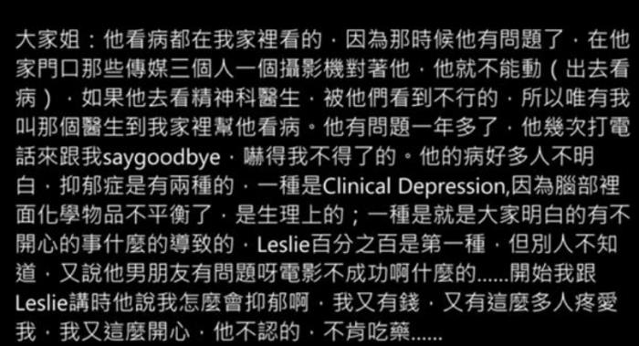 尽管,两封遗书从根本内容上完全不同,但从这之后,“情变”显然成了张国荣死因的第一猜测方向。