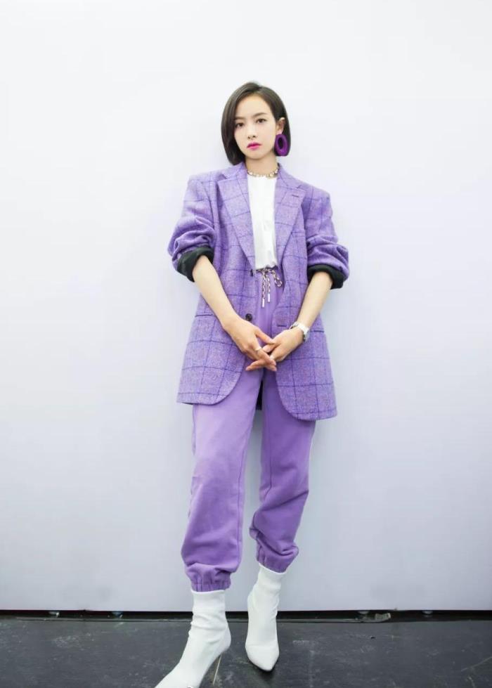 现在的西装单品设计千变万化,完全不必局限于基础款式,除了百搭好驾驭之外并无过多优势,像元素款西装不仅更时髦个性,造型的吸睛度也会翻倍,选择同风格的运动束脚裤来搭配就不会显突兀另类,宋茜这身活动装就是个典型例子,紫色格纹西装搭配同色系运动束脚裤复古又时尚,小众别致的色彩很容易引人注目,混搭高跟短靴尽显成熟魅力。